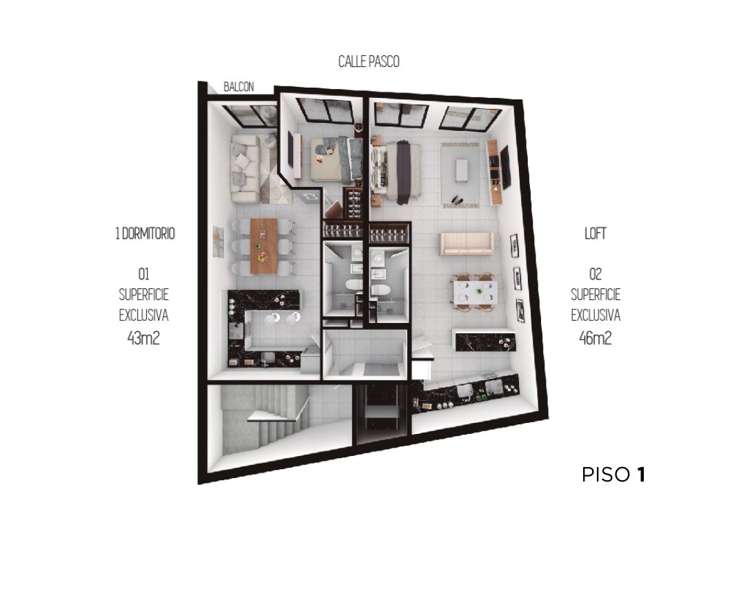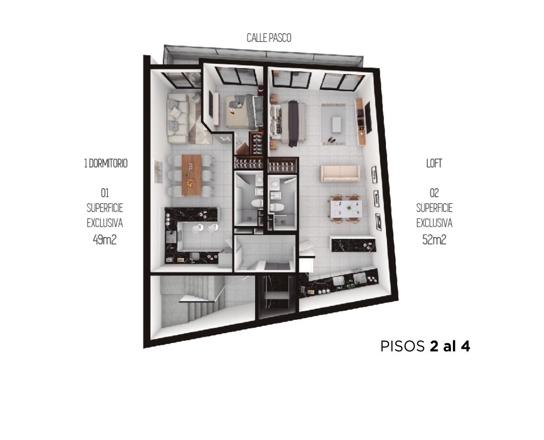 4 Departamentos tipo Loft de 46 y 52 m2 EXCLUSIVOS.